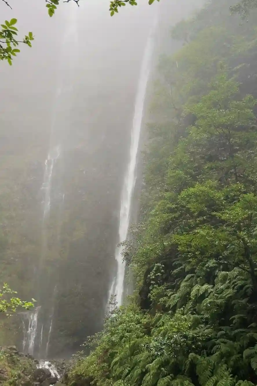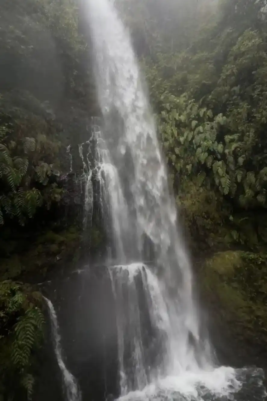 Dopo aver attraversato diversi scorci da film, arriverete alla ricompensa finale: una cascata maestosa, alta 100 metri, che cade dritta in un piccolo laghetto circondato da pareti di roccia altissime ricoperte di felci.