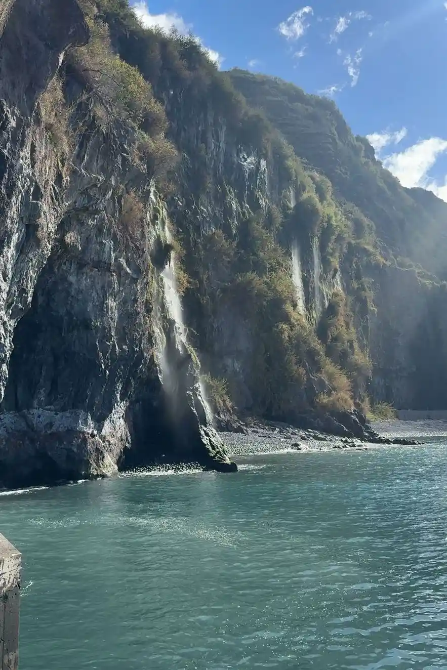 Dopo il trekking ci siamo spinti ancora più a ovest verso Paul do Mar, un borgo di pescatori incastonato tra l'oceano e scogliere altissime. Qui si trova una cascata pazzesca che cade direttamente in spiaggia